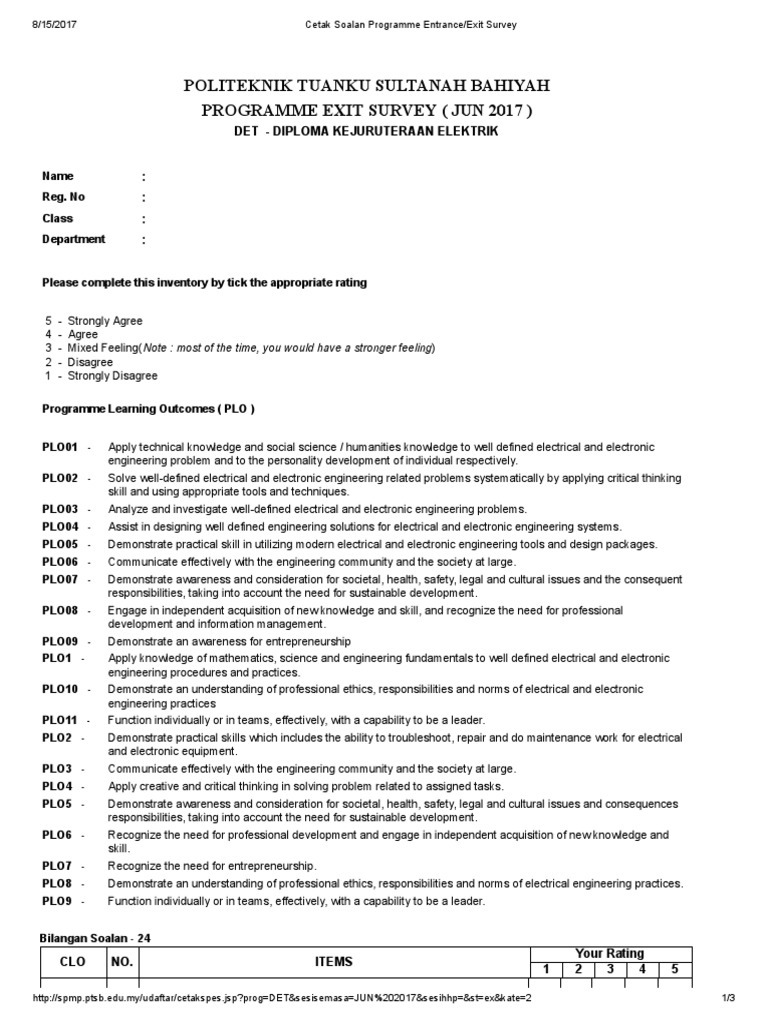 Exit Survey For Polytechnic Pdf Engineering Critical Thinking