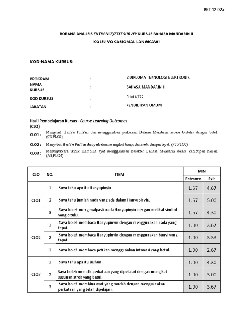 3 1 Borang Analisis Entrance Exit Survey Sesi 2 2019 Pdf